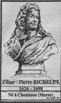 Cheminon est la patrie du fameux grammairien Richelet, qui naquit en 1626 et dont le souvenir est perpétué par une statue érigée sur la place de la mairie. Pierre César Richelet va devenir un des illustres écrivains du siècle de Louis XIV par ses ouvrages sur la langue française. Il suit des études au collège de Vitry le François puis, adulte, part à Dijon commme précepteur. C’est dans cette ville qu’il donne libre à sa passion : l’écriture.